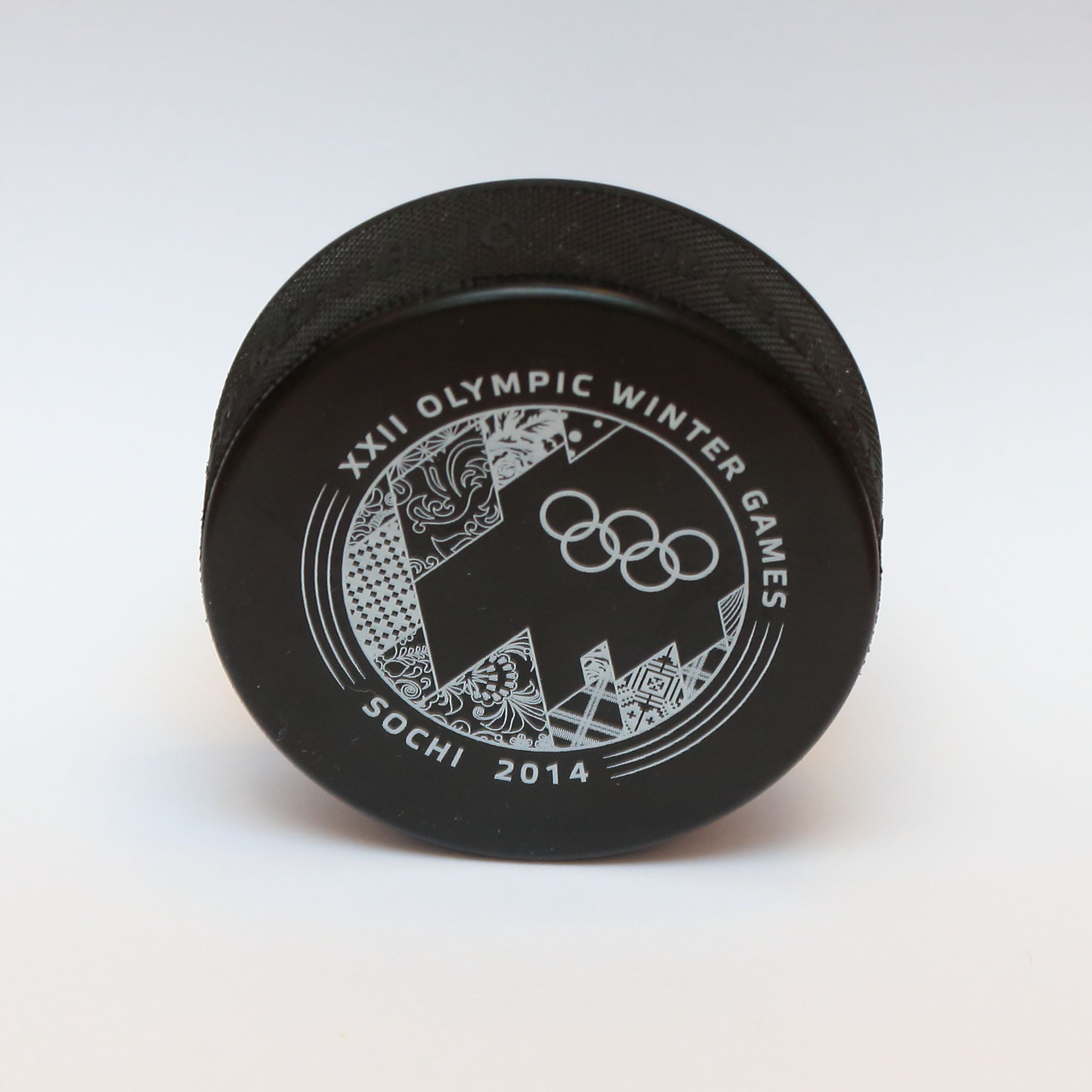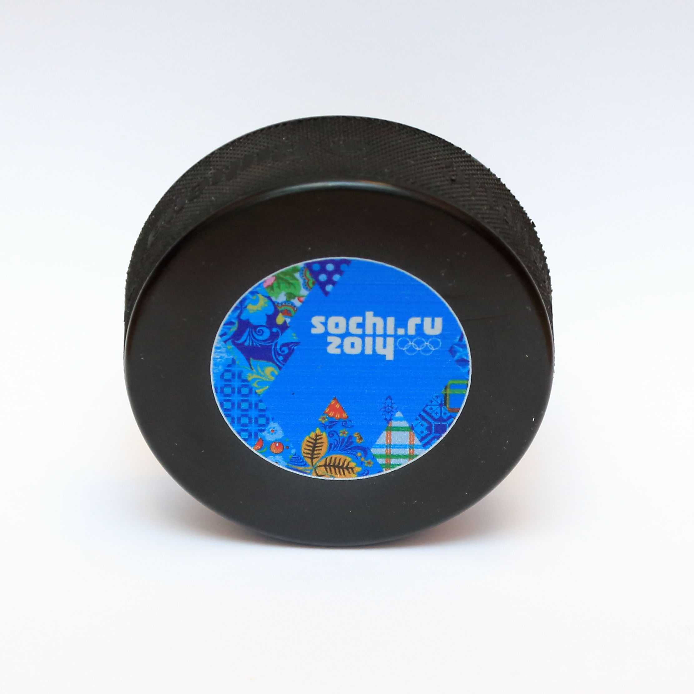 На лицевую сторону шайбы "Сочи-2014" нанесено фирменное "лоскутное одеяло" в цветном исполнении, на обратной стороне – в черно-белом. Более 20 эскизов и 30 усовершенствований потребовалось организаторам, чтобы сделать идеальную шайбу для главного хоккейного турнира планеты. В среднем для проведения одной игры требуется до 80 шайб. Технология подготовки шайб к игре предполагает заморозку в течение нескольких часов перед матчем для того, чтобы уменьшить трение и предотвратить отскоки от поверхности льда. Цвет фирменного "лоскутного одеяла" на лицевой стороне определяет принадлежность шайбы "Сочи-2014" к месту состязания. На хоккейных матчах в ледовом дворце "Большой" будут использоваться шайбы с фиолетовой цветовой гаммой "лоскутного одеяла", на ледовой арене "Шайба" – c синей.