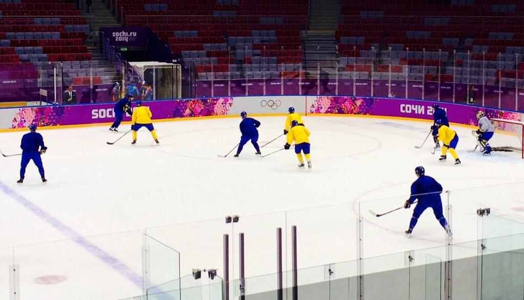 На втором занятии в олимпийском Сочи сборная Швеции уделила время отработке действий спецбригад. В большинстве "Тре Крунур" наигрывали следующие сочетания: Карлссон – Альфредссон, Ландеског – Зеттерберг – Стин, Экман-Ларссон – Эдлер, Седин – Бэкстрем – Л. Эрикссон.