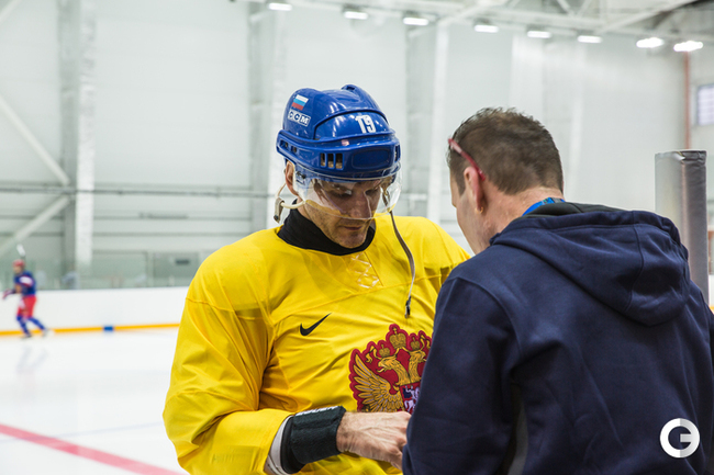 Алексей Яшин на тренировке женской сборной по хоккею