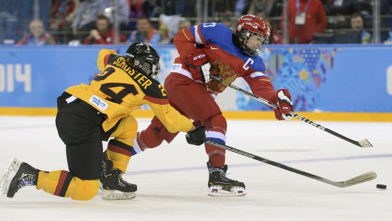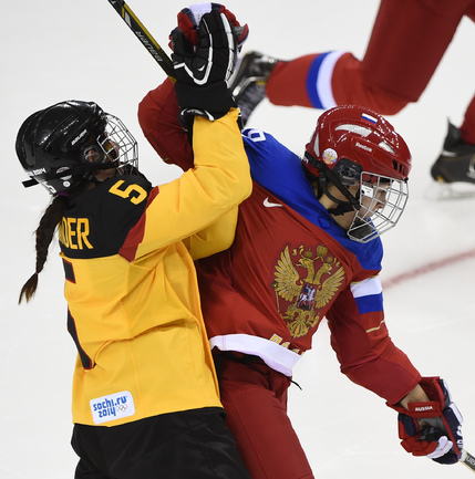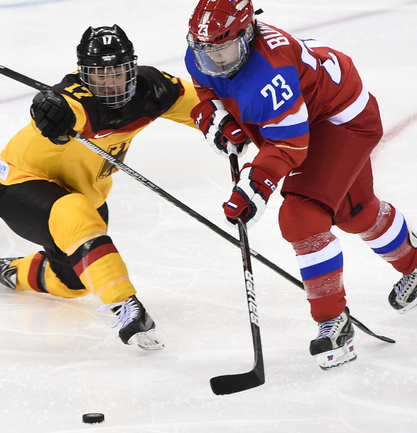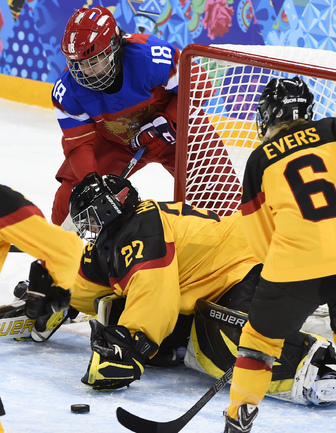 Хоккей. Сочи. XXII Олимпийские зимние игры. Женщины. Групповой этап. Группа B. Россия – Германия – 4:1 (0:0, 0:1, 4:0). Голы: Буш – 1 (Анвандер), 26:48 – 0:1. Гаврилова – 1 (Хомич, Смоленцева), 45:04 – 1:1. Сосина – 1 (бол., Дюбанок, Бурина), 48:49 – 2:1. Смоленцева – 1 (Шибанова), 49:27 – 3:1. Сосина – 2 (Дюбанок, Смоленцева), 52:15 – 4:1. Фото AFP