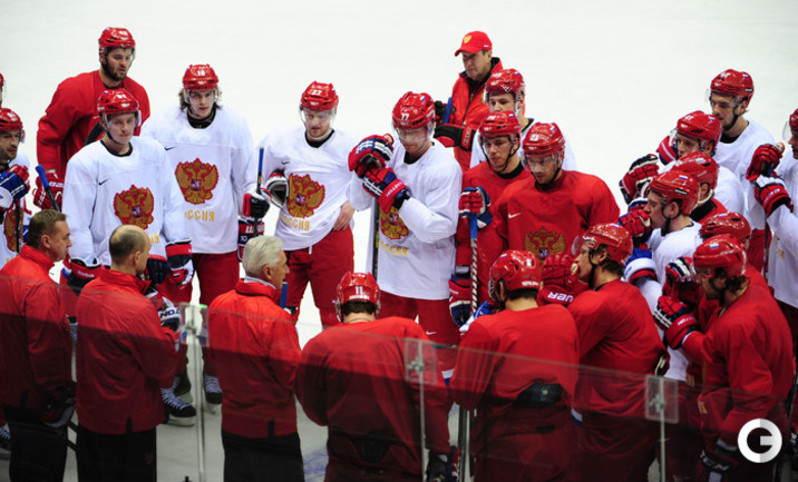 Олимпиада в Сочи. ХХII Зимние олимпийские игры. Ледовый дворец "Большой". Хоккей. Сборная. Россия. Тренировка сборной России по хоккею. Фото - Александр Федоров, "СЭ".