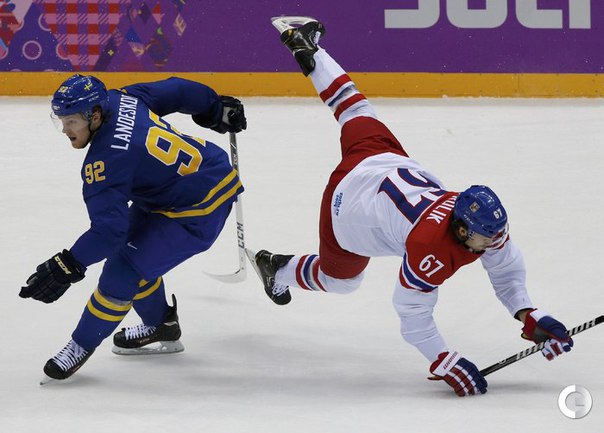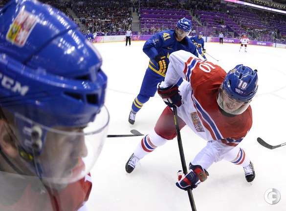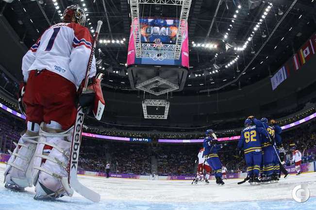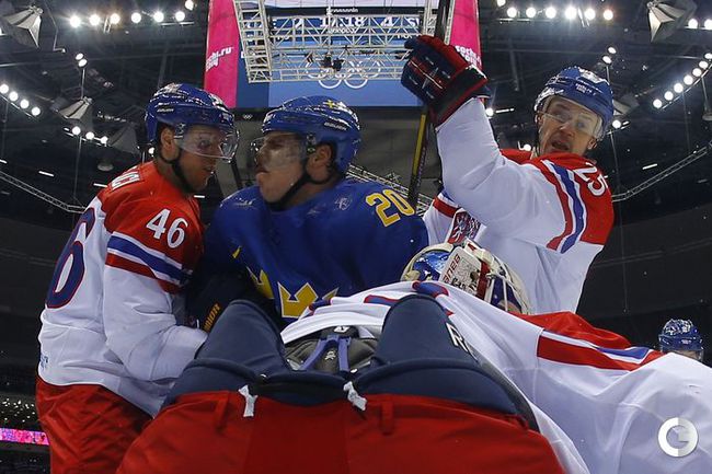 Сочи. XXII Олимпийские зимние игры. Мужчины. Групповой турнир. Группа C. Чехия – Швеция – 2:4 (0:2, 2:2, 0:0). Голы: Карлссон – 1 (Экман-Ларссон, Стин), 10:07 – 0:1. Берглунд – 1 (Экман-Ларссон, Лундквист), 13:17 – 0:2. Зеттерберг – 1, 20:51 – 0:3. Карлссон – 2 (бол., Седин, Бэкстрем), 24:07 – 0:4. Жидлицки – 1 (Элиаш, Михалек), 28:12 – 1:4. Ягр – 1, 30:01 – 2:4. Фото AFP, REUTERS