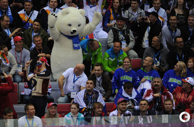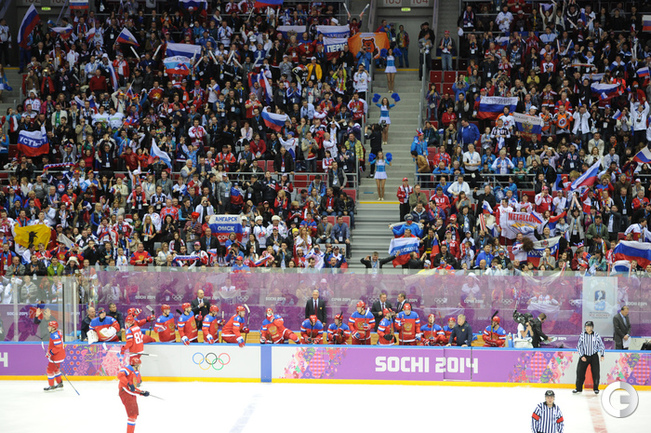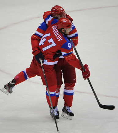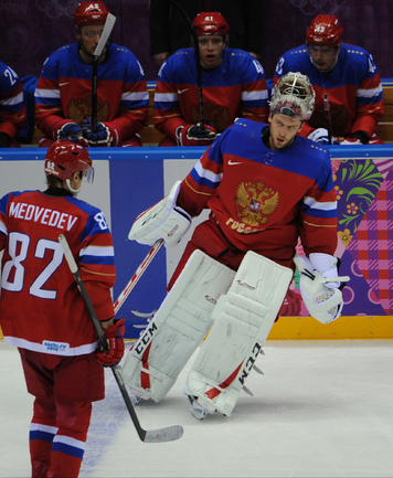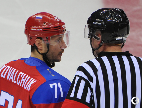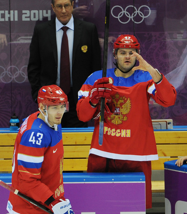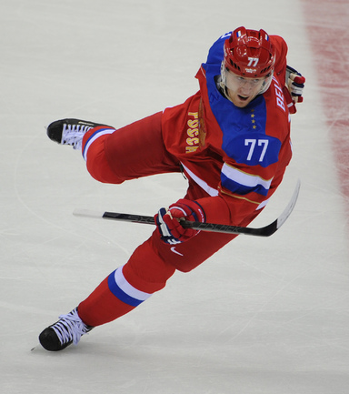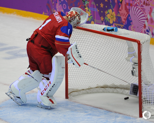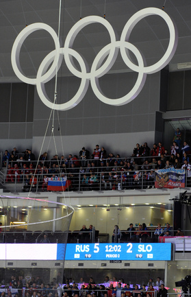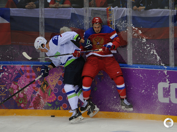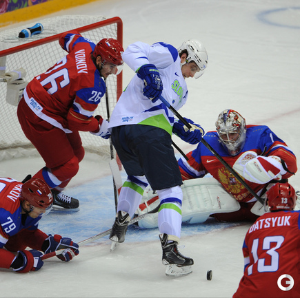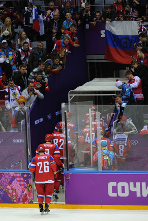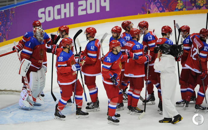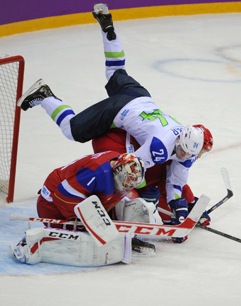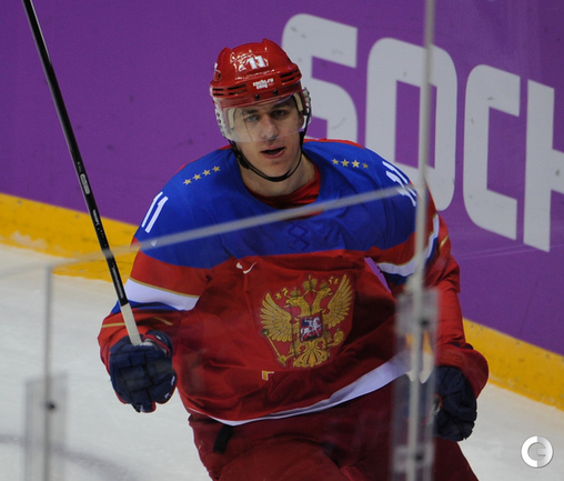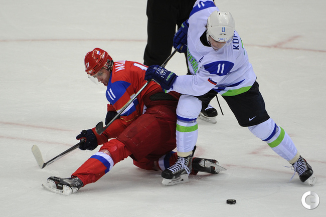 Сборная России с победы над Словенией начала групповой олимпийский турнир в Сочи. Самым результативным игроком встречи стал форвард Евгений Малкин, отметившийся 3 (1+2) очками. Кроме того, 2 (1+1) очка записал на свой счет Александр Овечкин. Фото - Александр ФЕДОРОВ, "СЭ"