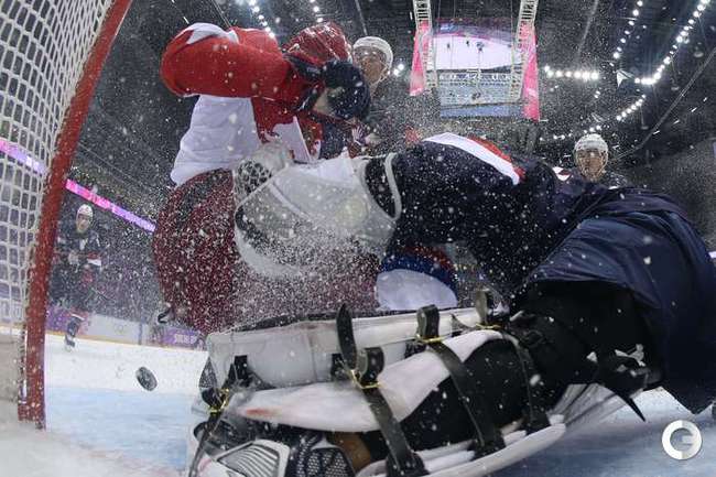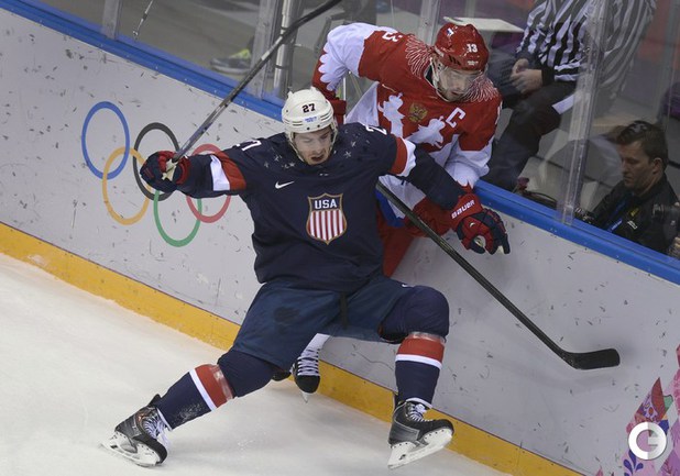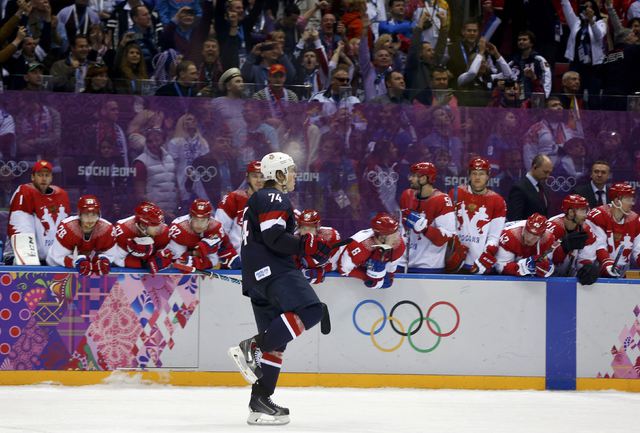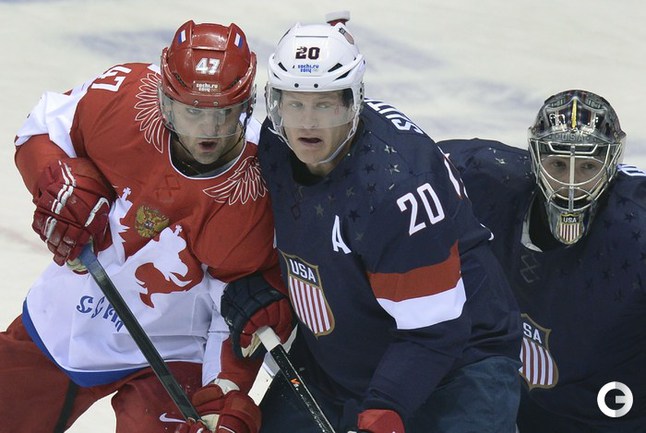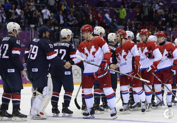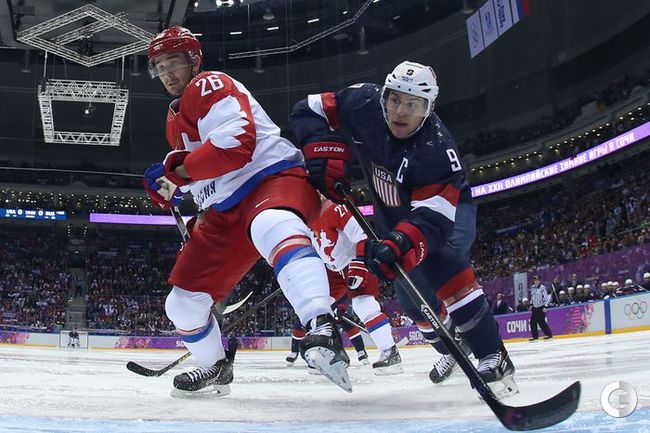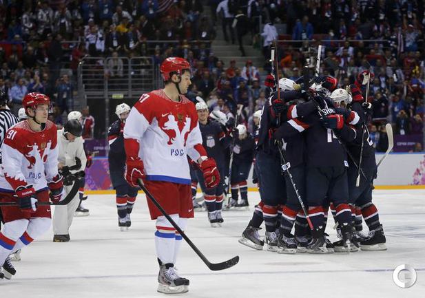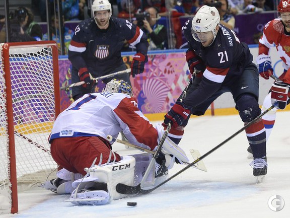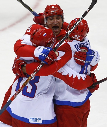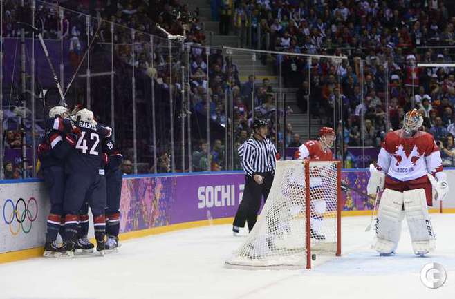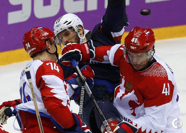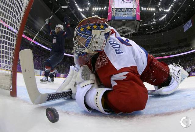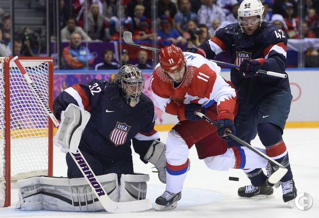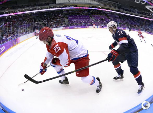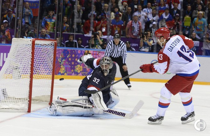15.02.2014. Сочи. Россия в матче 2-го тура группового турнира Олимпиады-2014 по буллитам проиграла США. У россиян дублем отметился капитан национальной команды Павел Дацюк. Фото AFP, REUTERS