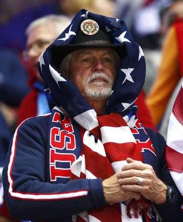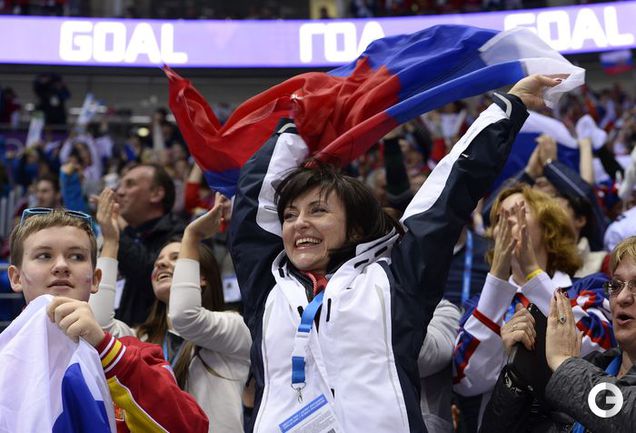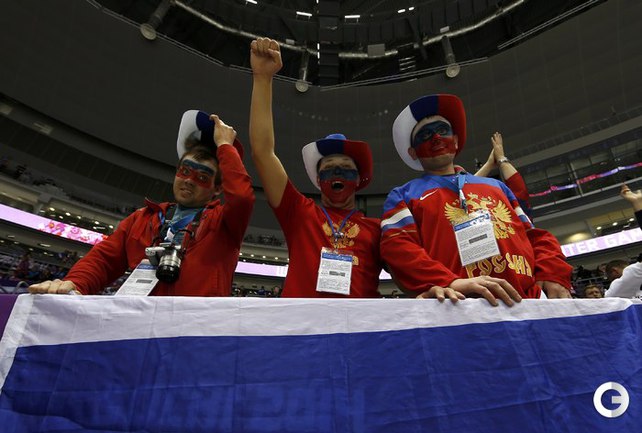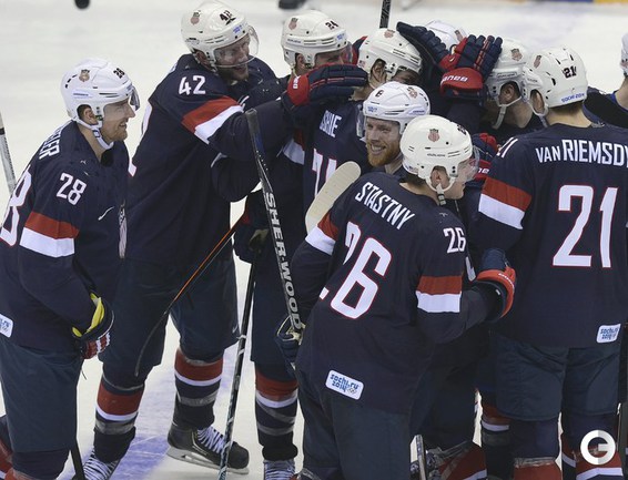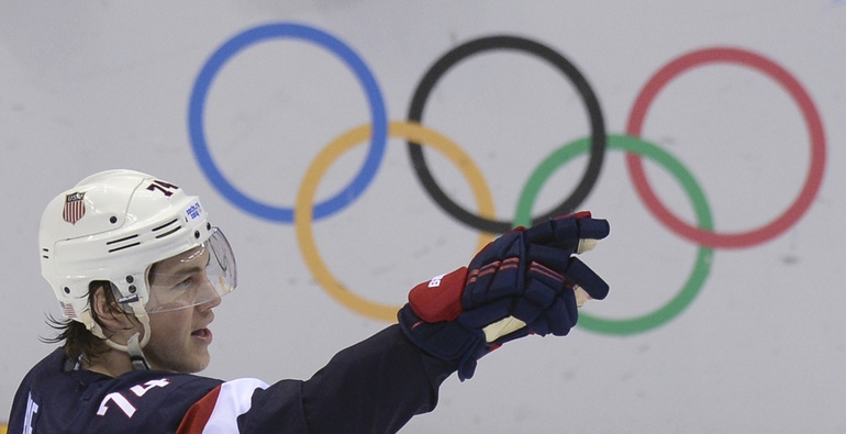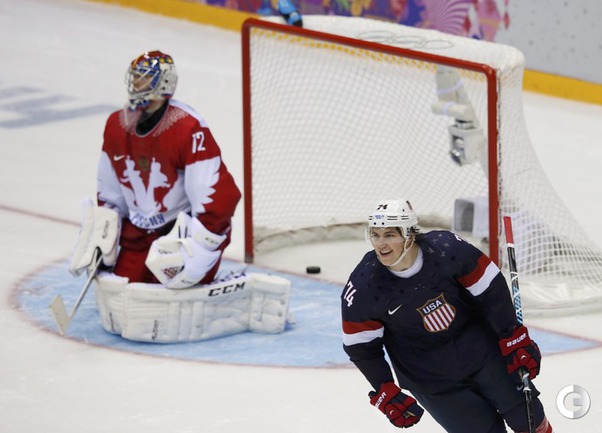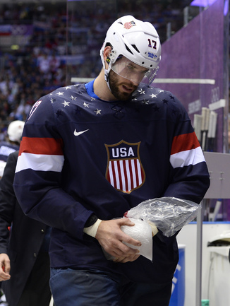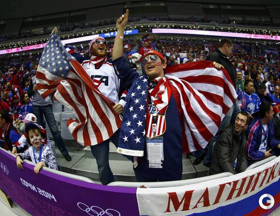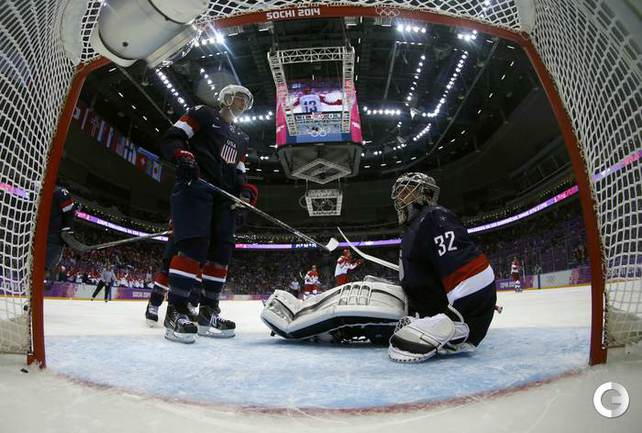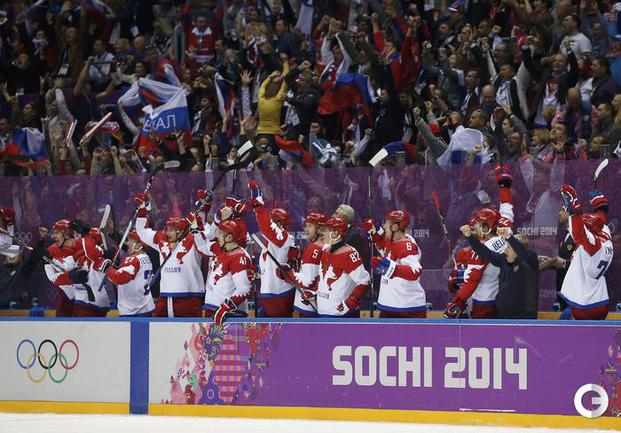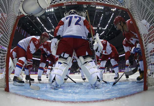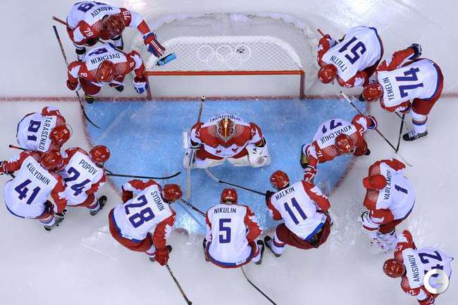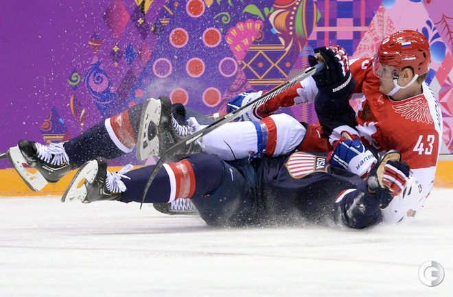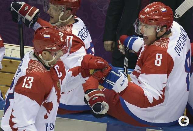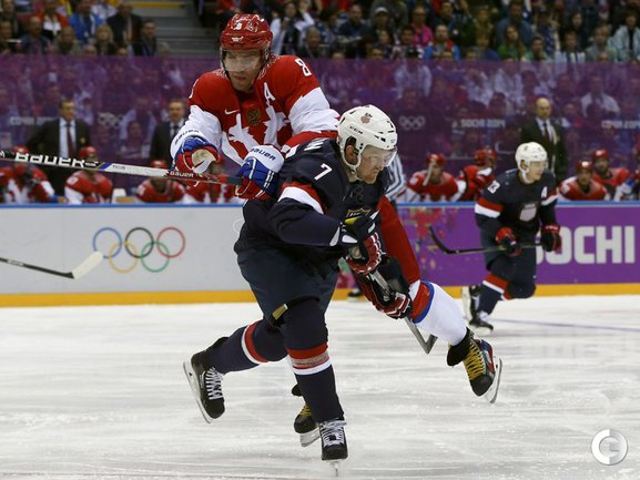 15.02.2014. Сочи. Россия в матче 2-го тура группового турнира Олимпиады-2014 по буллитам проиграла США. У россиян дублем отметился капитан национальной команды Павел Дацюк. Фото AFP, REUTERS