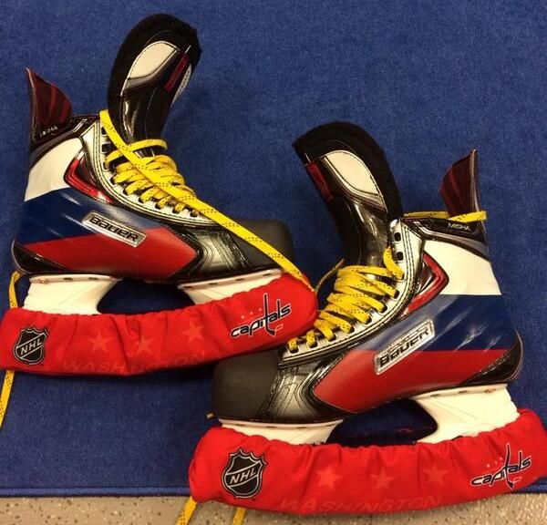 В коньках с российским триколором (кто бы сомневался?) будет выступать на играх нападающий российской сборной Александр Овечкин.