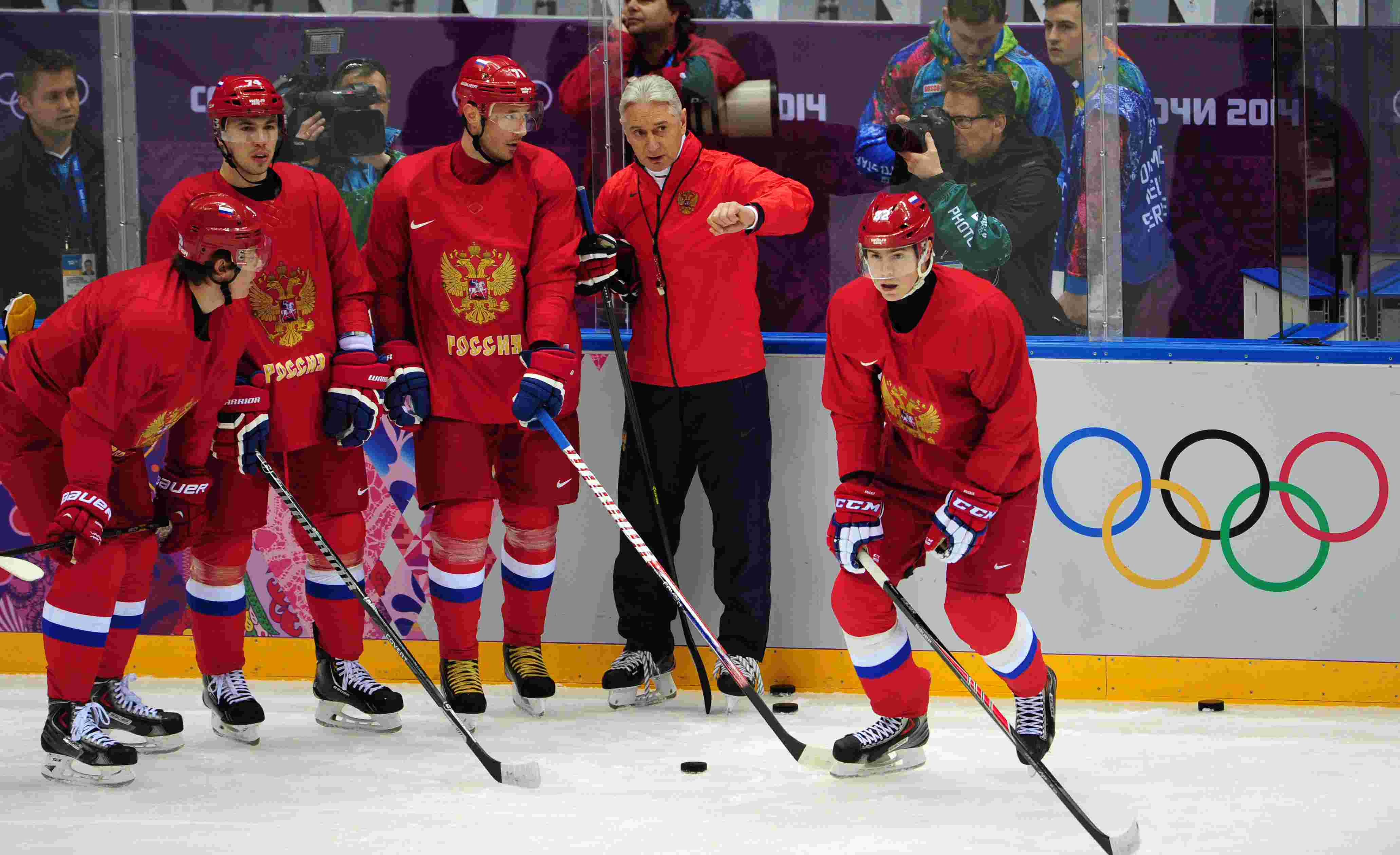 Сегодня матчем против Словении сборная России начнет хоккейный турнир на Олимпиаде. "СЭ" вспоминает, как проходили тренировки национальной команды в Сочи.
