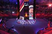 На импровизированном огромном экране был продемонстрирован проморолик будущей столицы Белой Олимпиады. На сцене же в роли феи предстала супермодель Наталья Водянова, на поле попрыгали люди в огромных прозрачных шарах. Дирижер Валерий Гергиев по телемосту управлял своим оркестром, который на Красной площади в Москве под светом прожекторов исполнил произведение Георгия Свиридова "Время вперед!".