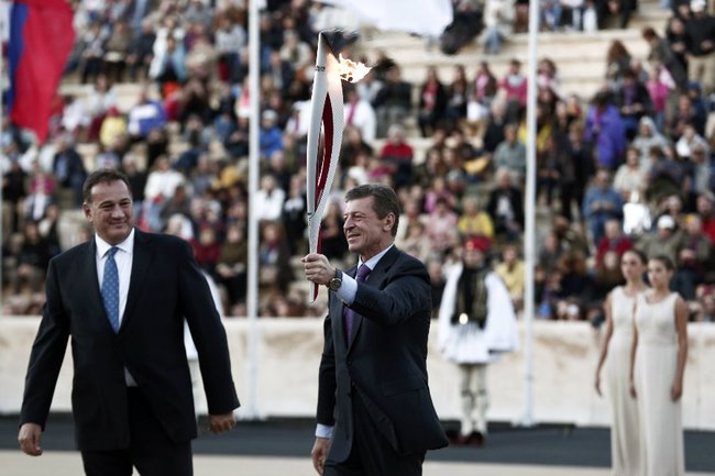 В Афинах состоялась торжественная церемония передачи олимпийского огня России, которая примет зимнюю Олимпиаду-2014 в Сочи. Заместитель председателя правительства РФ Дмитрий Козак на стадионе "Панатинаикос" в центре греческой столицы (на этой арене в 1896 году проходили первые Олимпийские игры современности) принял горящий факел у главы Греческого олимпийского комитета Спироса Капралоса. После этого пламя было помещено в специальную лампаду, в которой и прибудет завтра в Москву.