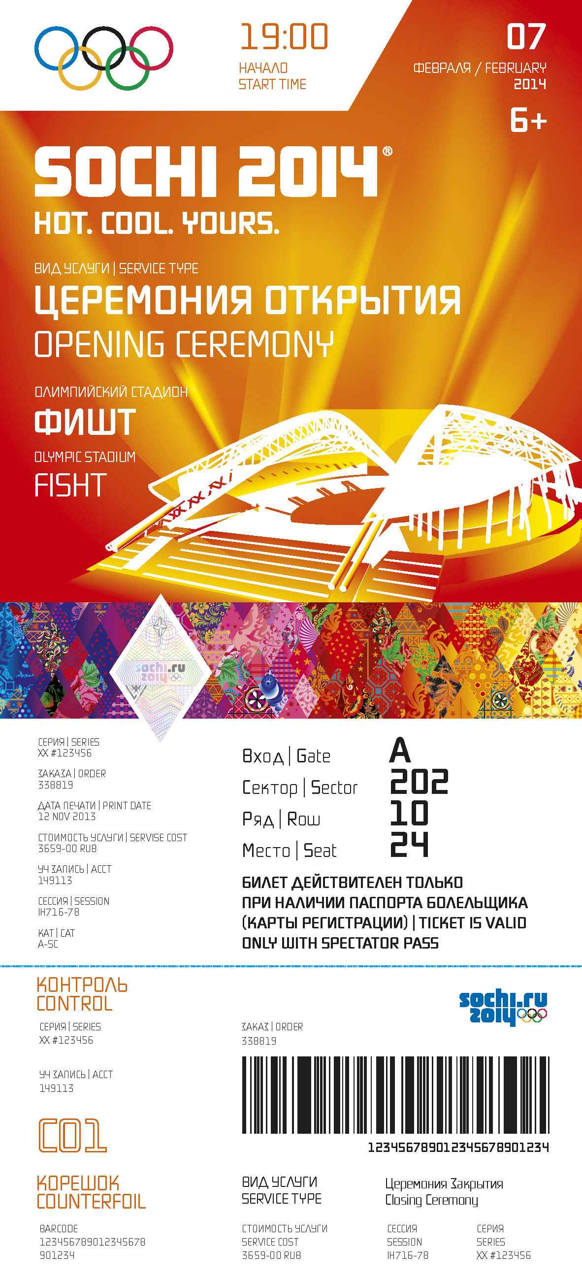 Оргкомитет XXII Олимпийских зимних игр в Сочи представил сувенирные билеты, сообщает пресс-служба "Сочи-2014". Билеты оформлены в соответствии с общей концепцией образа Игр с использованием основной символики и визуального образа "лоскутного одеяла", представляющего многообразие России. Сувенирные билеты получат зрители, которые купили их на сайте tickets.sochi2014.com, выбрав опцию "Доставка". Заказать сувенирные билеты можно только до 15 ноября 2013 года.