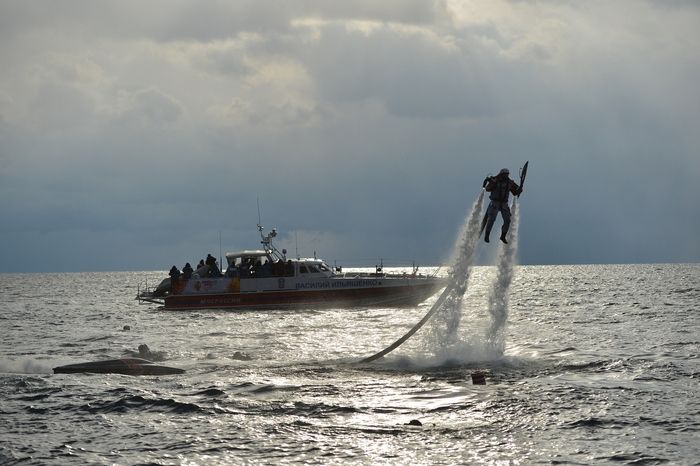 Факелоносец на летающем ранце-водомете доставил олимпийский огонь на сушу после погружения на дно озера Байкал, сообщает РИА "Новости".