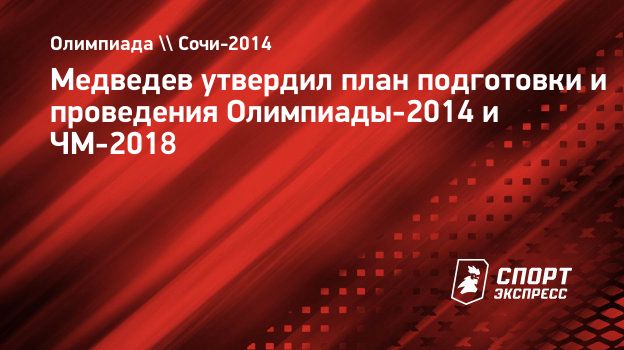 Медведев утвердил план подготовки и проведения Олимпиады-2014 и ЧМ-2018