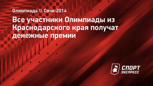 Спортсмены Кубани, которые завоюют на зимней Олимпиаде в Сочи с первого по восьмое места, получат из краевого бюджета денежные премии в сумме от 500 тысяч до 2 миллиона рублей, сообщает министерство физической культуры и спорта Краснодарского края. Каждый кубанский спортсмен, выигравший золото Олимпиады, получит премию в размере 2 миллиона рублей. Серебряные призеры станут обладателями премии в 1,5 миллиона рублей, а бронзовые – в 1 миллион рублей.
