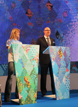 Оргкомитет "Сочи-2014" представил концепцию единого визуального образа XXII зимних Олимпийских и XI Паралимпийских игр 2014 года. В основу дизайнерского решения лег принцип "лоскутного одеяла" (пэчворк) - сочетание 16 орнаментов самых известных национальных промыслов России, от гжели до хохломы. Фото - Александр ФЕДОРОВ, "СЭ"