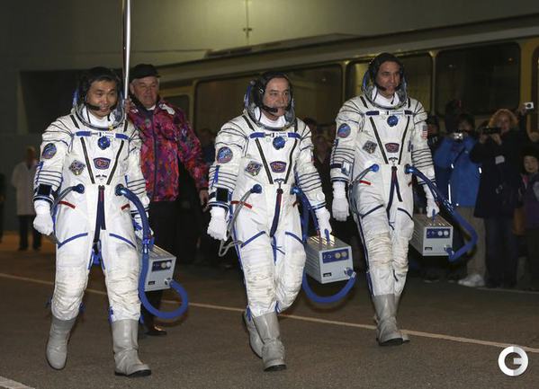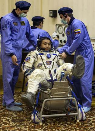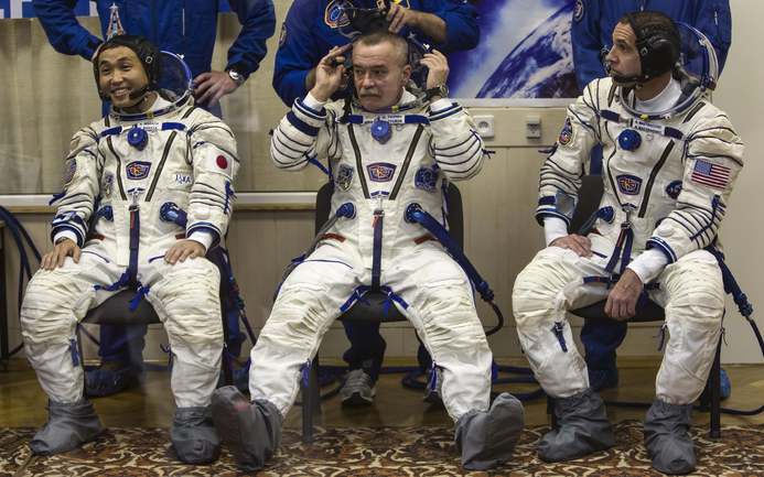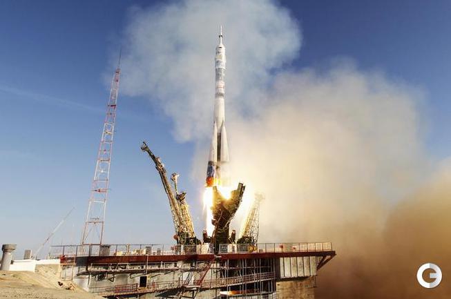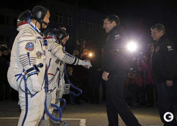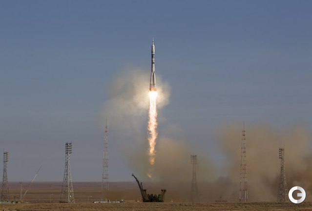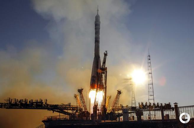 Ракета с олимпийской символикой "Сочи-2014" на борту отправила на околоземную орбиту Олимпийский факел. На борту корабля космонавты Коити Вакато (Япония), командир Михаил Тюрин (Россия) и Ричард Мастраккио (США). После стыковки с МКС Михаил Тюрин передаст Олимпийский факел космонавтам Олегу Котову и Сергею Рязанскому. На борту станции космонавты пронесут незажженный Олимпийский факел по всем сегментам МКС. Фото REUTERS
