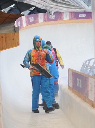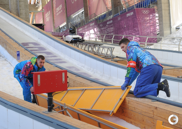 Олимпиада в Сочи. Санно-бобслейная трасса "Русские горки". Презентация "ОМЕГА". Фото - Федор Успенский, "СЭ"