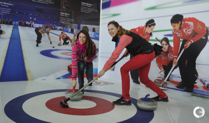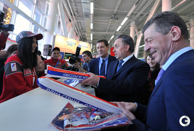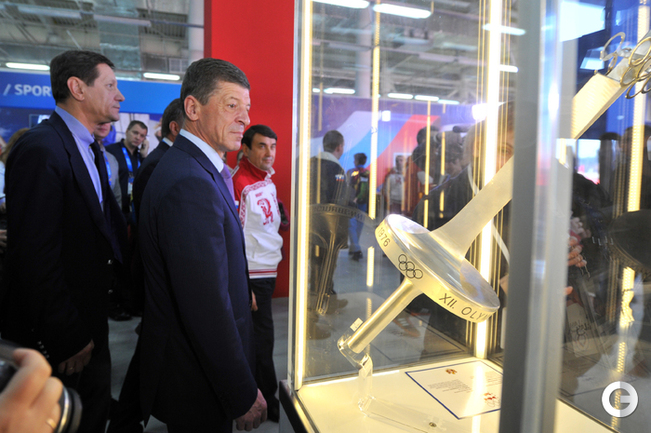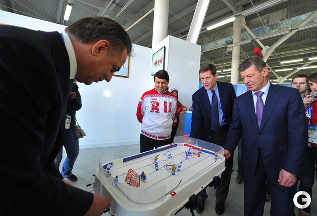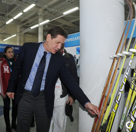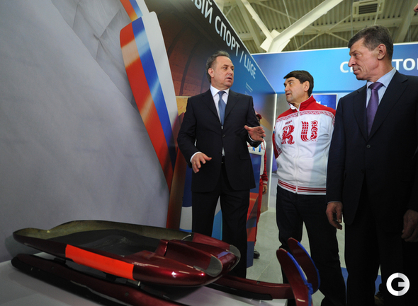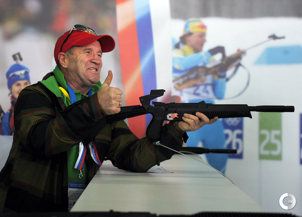 Олимпиада в Сочи. ХХII Зимние олимпийские игры. Дом болельщиков Олимпийской команды России. Открытие. Министр спорта России Виталий Мутко попробовал себя в роли биатлониста и в итоге заработал один штрафной круг. Фото - Александр ФЕДОРОВ, "СЭ"