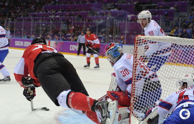 Сочи. Хоккей.В матче группы B мужского олимпийского турнира в Сочи действующий олимпийский чемпион сборная Канады победила Норвегию – 3:1. Фото - Александр Федоров, "СЭ"