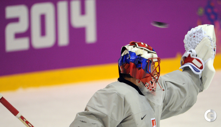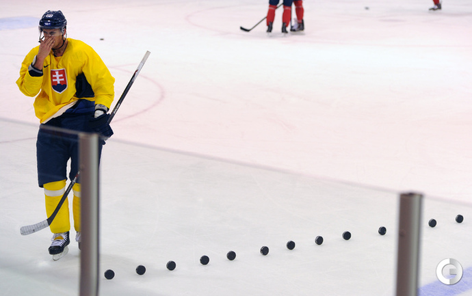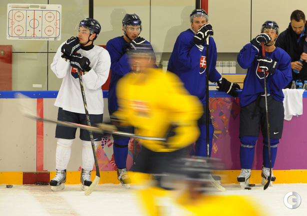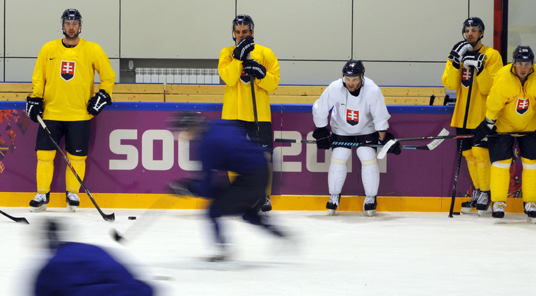 Олимпиада в Сочи. ХХII Зимние олимпийские игры. Ледовый дворец Большой. Сборная Словакии. Тренировка. Мужчины. Фото - Александр Федоров, "СЭ".