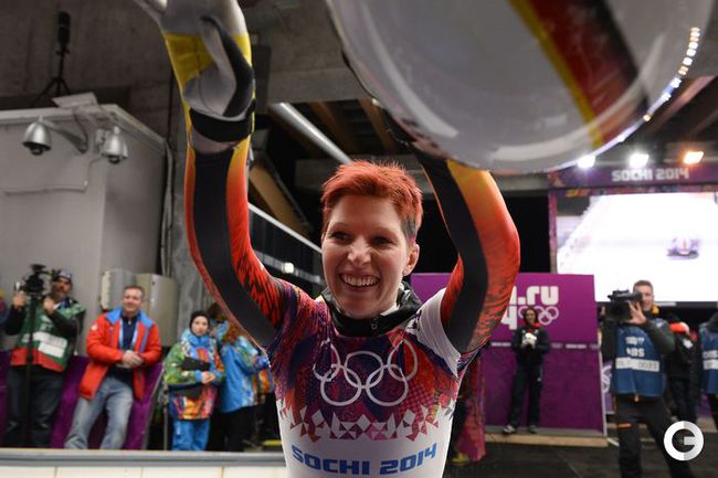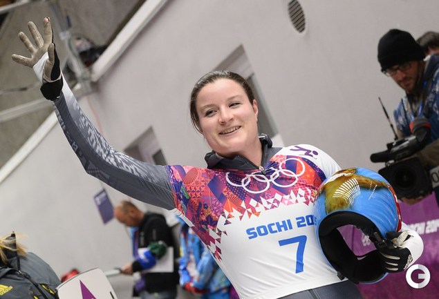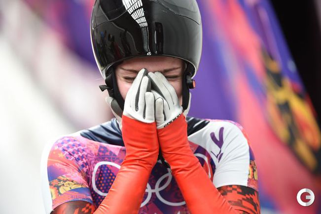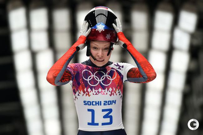 Скелетон. Сочи. XXII Олимпийские зимние игры. Женщины. Итоговое положение. 1. Ярнолд (Великобритания) – 3.52,89 (58,43 + 58,46 + 57,91 + 58,09). 2. Пикус-Пэйс (США) – 3.53,86 (58,68 + 58,65 + 58,25 + 58,28). 3. НИКИТИНА (Россия) – 3.54,30 (58,48 + 58,96 + 58,33 + 58,53). Еще одна представительница России – Ольга Потылицына – стала пятой. Мария Орлова – шестая. Эта медаль стала первой для сборной России в истории женского скелетона. Фото AFP