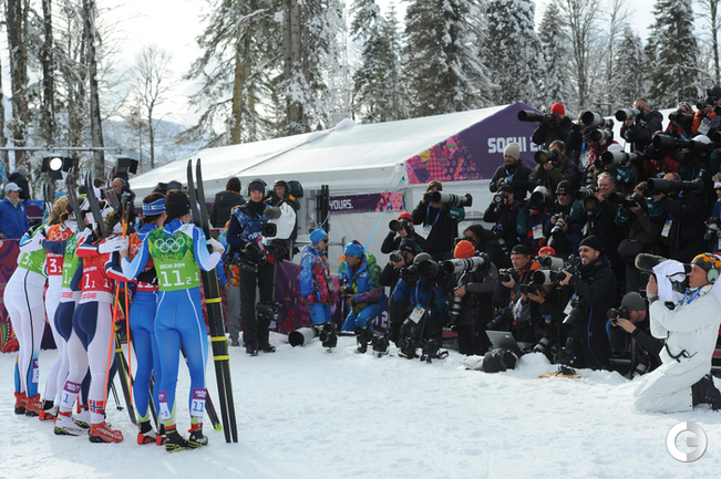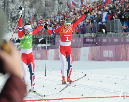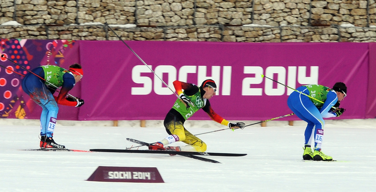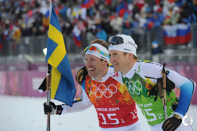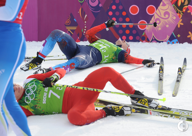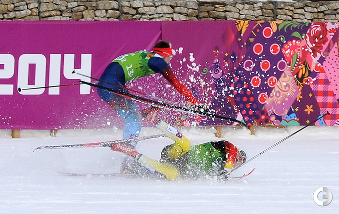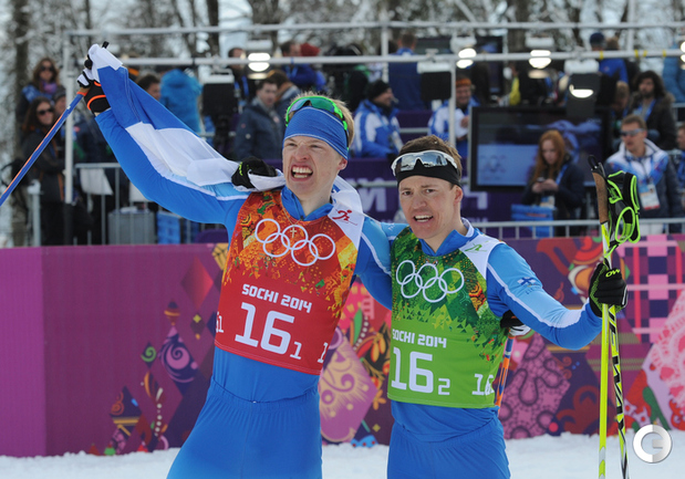 Лыжные гонки. Сочи. XXII Олимпийские зимние игры. Мужчины. Командный спринт (К). Финал. 1. Финляндия (Нисканен, Яухоярви) – 23.16,89. 2. РОССИЯ (ВЫЛЕГЖАНИН, КРЮКОВ) – отставание 0,97. 3. Швеция (Йонссон, Петерсон) – 5,14. Фото - Федор УСПЕНСКИЙ, "СЭ"