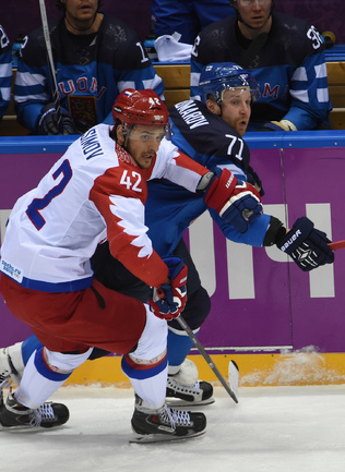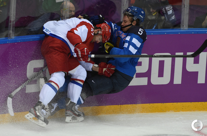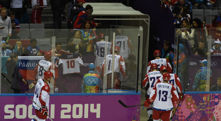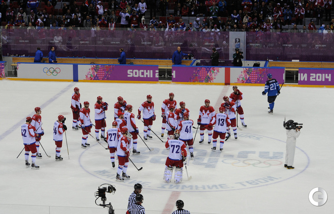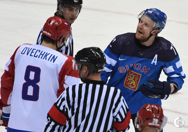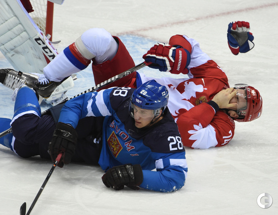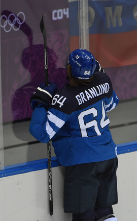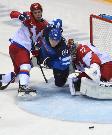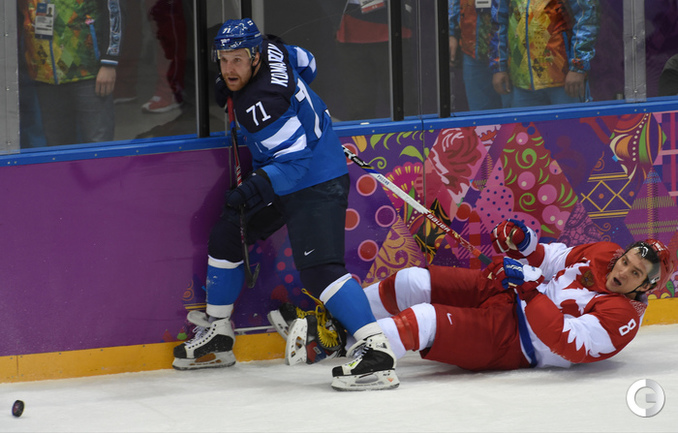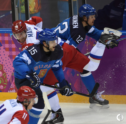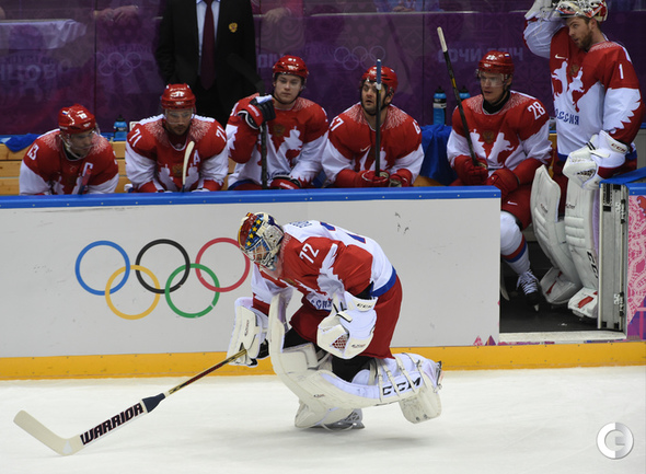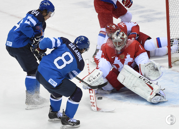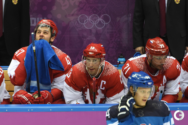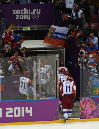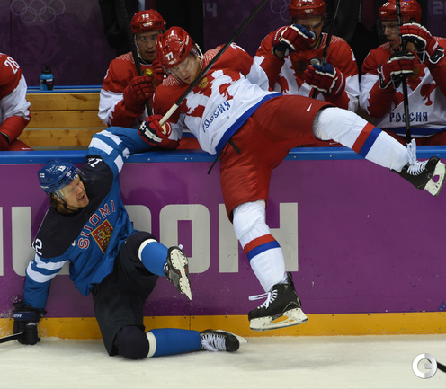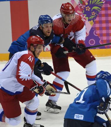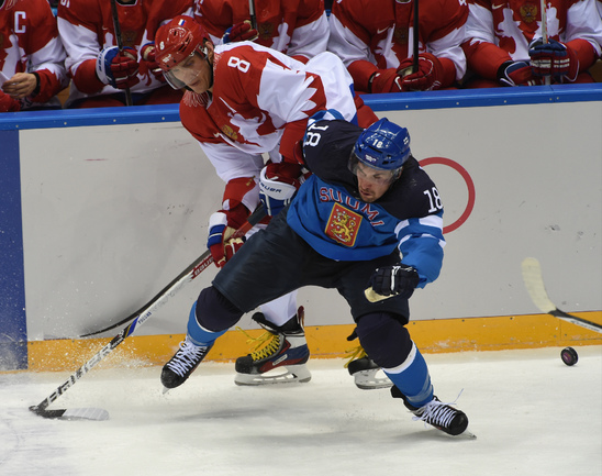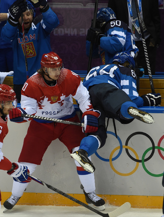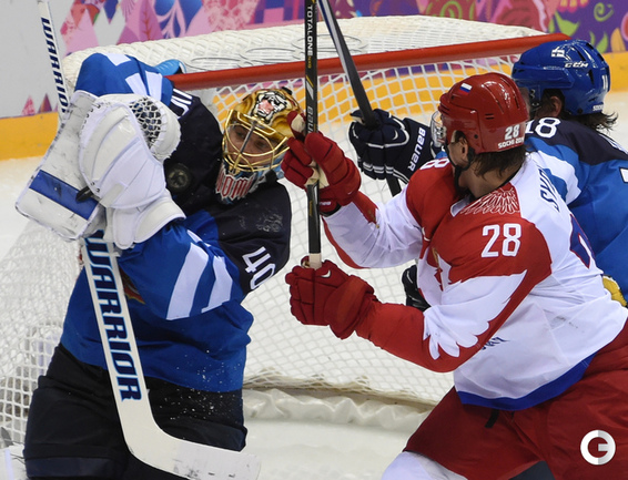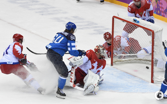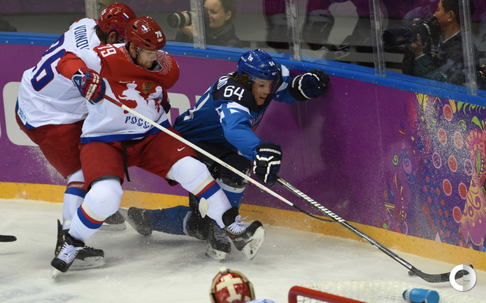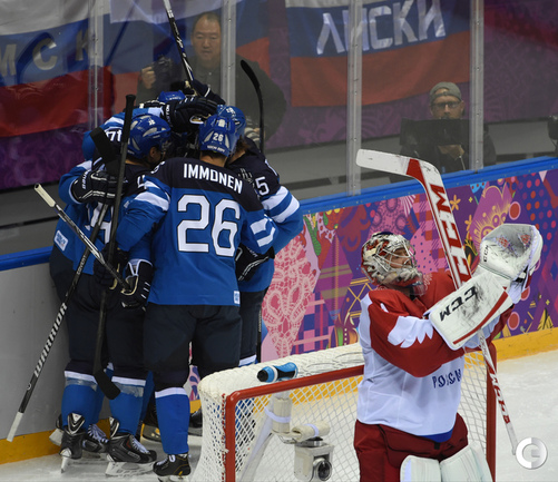 Сочи. ХХII Олимпийские зимние игры. Мужчины. 1/4 финала. Финляндия – РОССИЯ – 3:1 (2:1, 1:0, 0:0). Голы: Ковальчук – 1 (бол., Дацюк), 7:51 – 0:1. Аалтонен – 1 (Контиола), 9:18 – 1:1. Селянне – 1 (Гранлунд), 17:38 – 2:1. Гранлунд – 1 (бол., Селянне, Тимонен), 25:37 – 3:1. Фото - Александр ФЕДОРОВ, "СЭ"