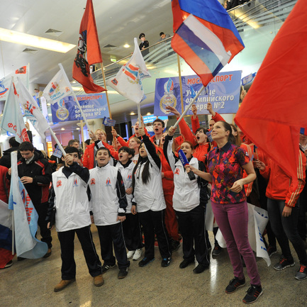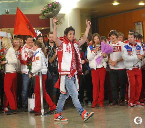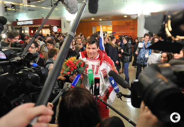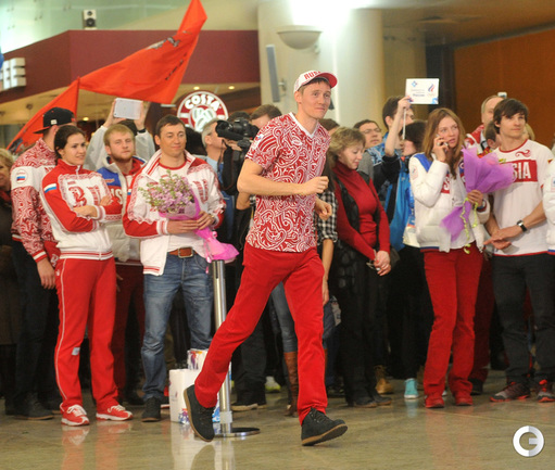 Шереметьево. Российские спортсмены вернулись с олимпийских игр в Сочи. Фото Татьяна ДОРОГУТИНА, "СЭ"
