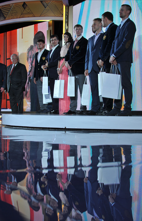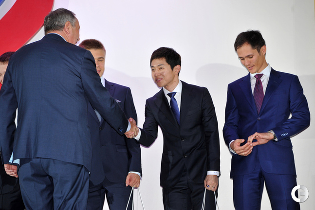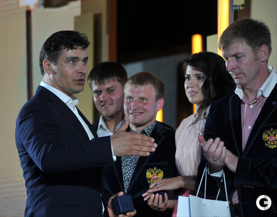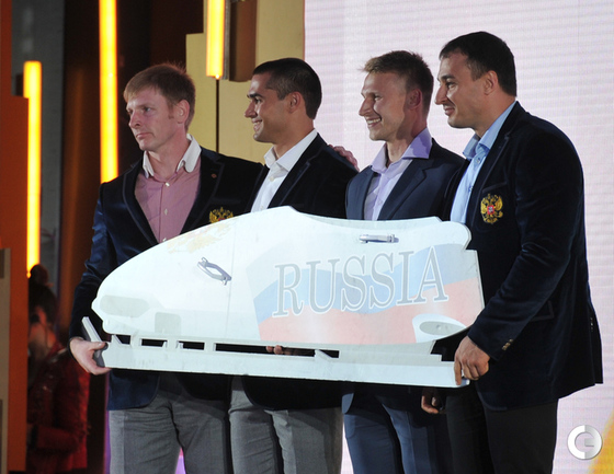 Москва. Российские победители и призеры Олимпийских игр в Сочи получили памятные кольца с олимпийской символикой. Фото Александр ФЕДОРОВ, "СЭ"