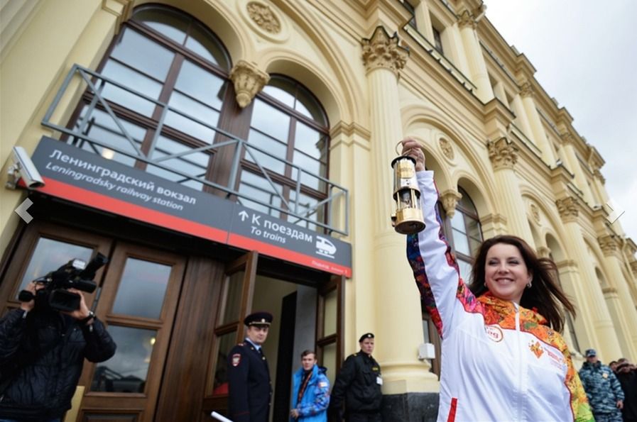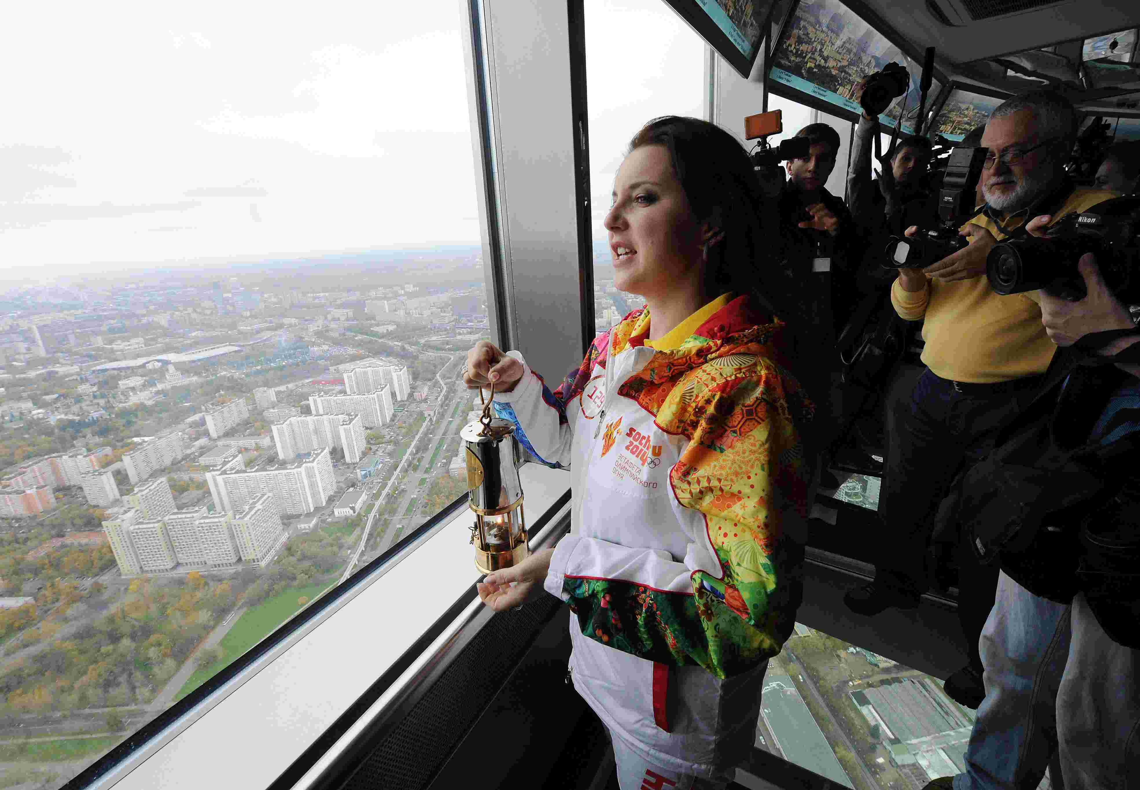 В свой заключительный день эстафеты в столице России огонь зимних олимпийских игр побывал на Останкинской телебашне на высоте 337 метров, куда его подняла двукратный призер Олимпиад Ирина Слуцкая.