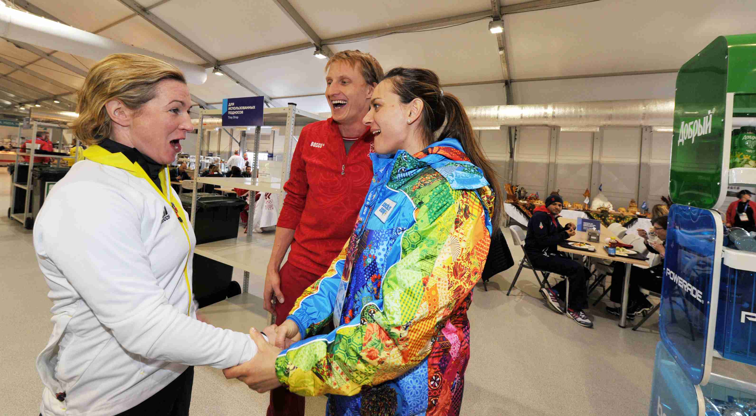 Пехштайн, кстати, подошла к Исинбаевой с двумя просьбами. Кроме фото на память, попросила мэра Олимпийской деревни решить проблему с невысокой скоростью интернета.