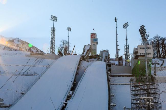 Олимпийский городок был построен в кратчайшие сроки. Генеральным партнером Олимпиады выступил Сбербанк. При его помощи возвели объекты федерального значения: комплекс трамплинов К-125 (большой трамплин) и К-95 (малый трамплин) "Русские горки", а также Олимпийскую медиадеревню и горный медиацентр.