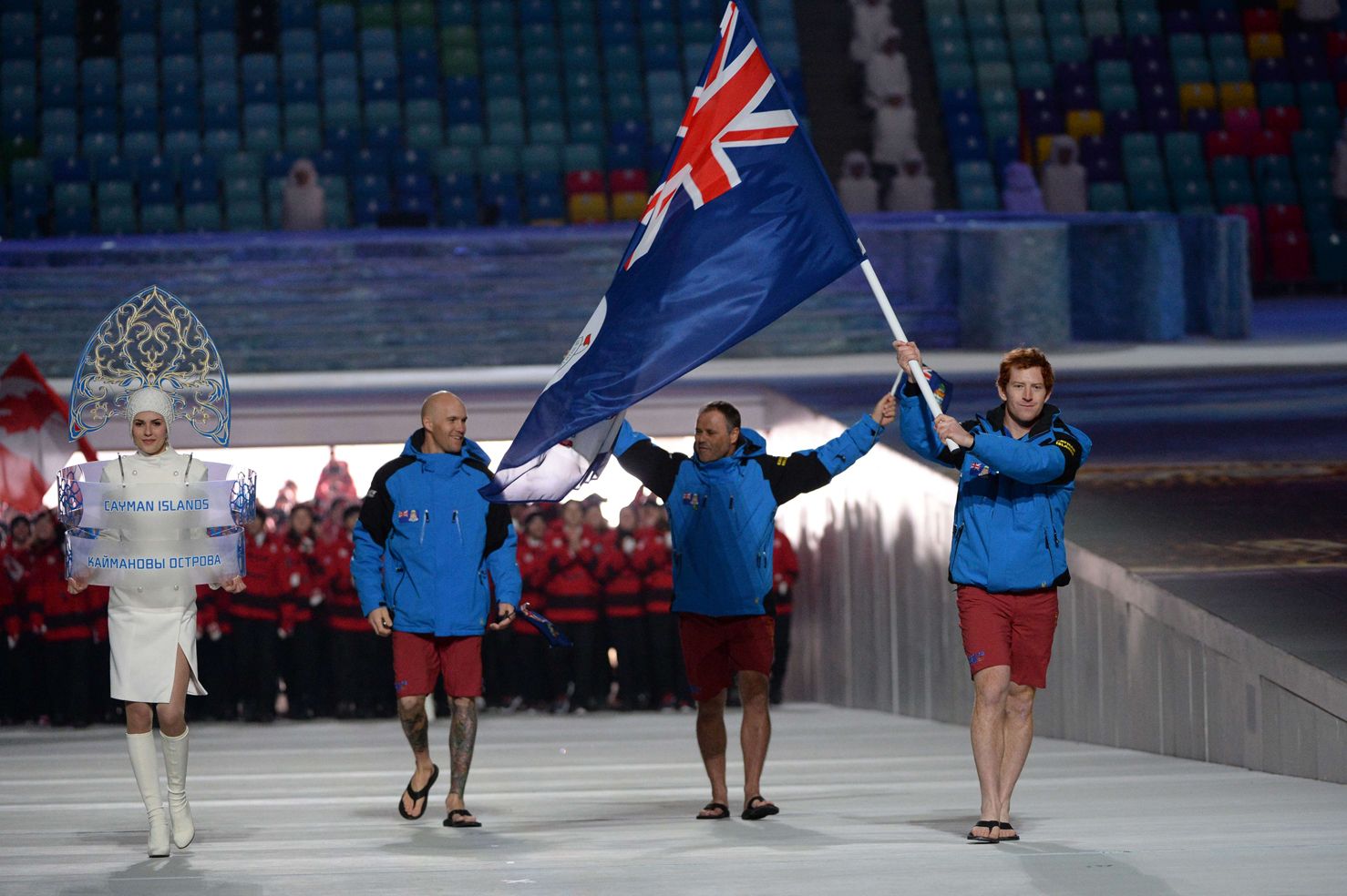 Каймановы острова. У этих островитян шорты были бордовые, но дело даже не в них, а в том, что сочетали кайманцы их со шлепанцами-вьетнамками! На босу, естественно, ногу! Вот так! Правильно! А то очень уж многие страны почему-то сильно утеплились, что совсем неуместно средь сочинских пальм.