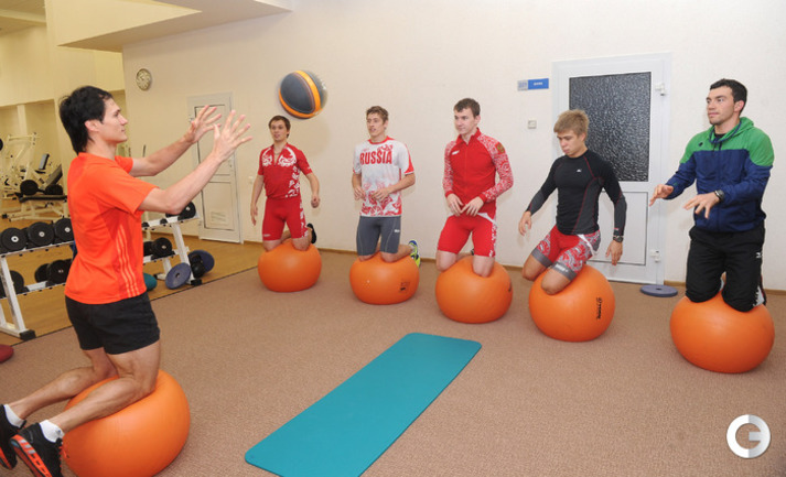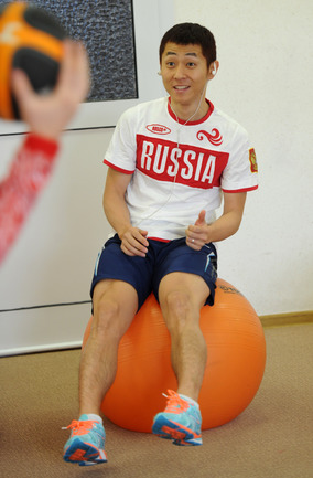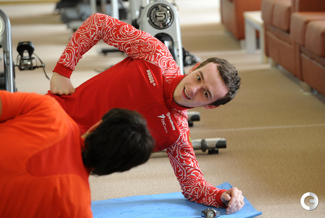 Сборная России по шорт-треку на атлетической тренировке в УТЦ "Новогорск". В составе национальной команды продолжает подготовку к Сочи-2014 трёхкратный олимпийский чемпион Виктор Ан. Фото - Федор Успенский, "СЭ"