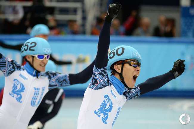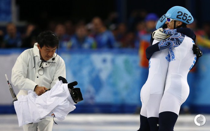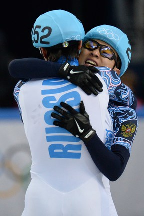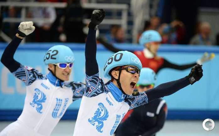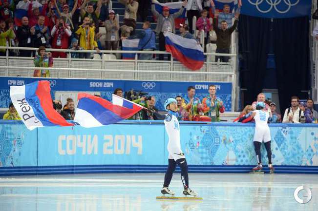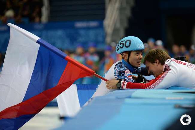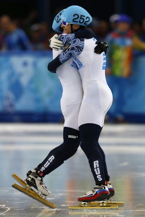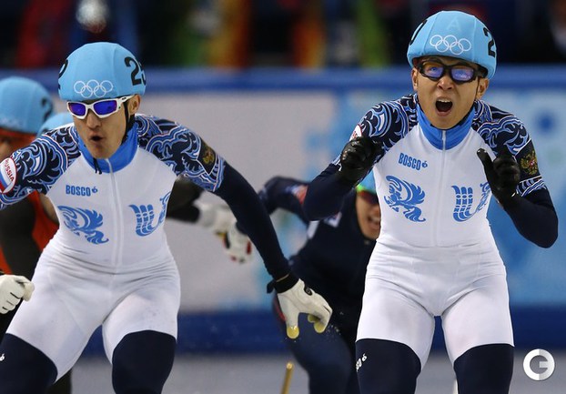Россияне Виктор Ан и Владимир Григорьев стали чемпионом и вице-чемпионом Олимпийских игр в Сочи на дистанции 1000 метров. Фото AFP, REUTERS