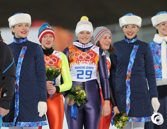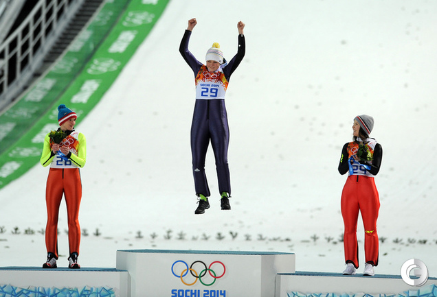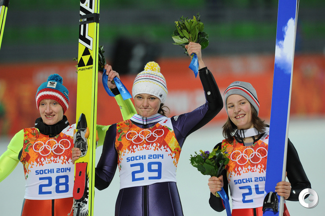 На Олимпиаде в Сочи завершились первые в истории Игр женские соревнования по прыжкам с трамплина. Золото на трамплине K-95 завоевала немка Карина Фогт. Россиянка Ирина Аввакумова стала 15-й. Серебряным призером стала Габриэла Ирашко-Штольц, бронзовым - француженка Колин Маттель. Фото - Федор Успенский, "СЭ"