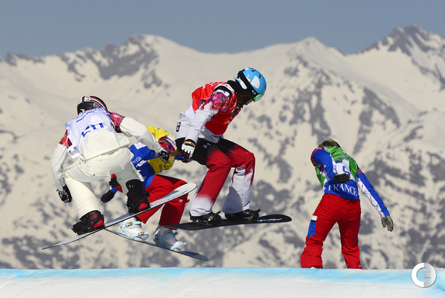 Сочи. XXII Олимпийские зимние игры. Женщины. Борд-кросс. Финал. 1. Самкова (Чехия). 2. Мальте (Канада). 3. Трапеш (Франция). Фото AFP, REUTERS