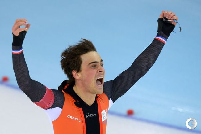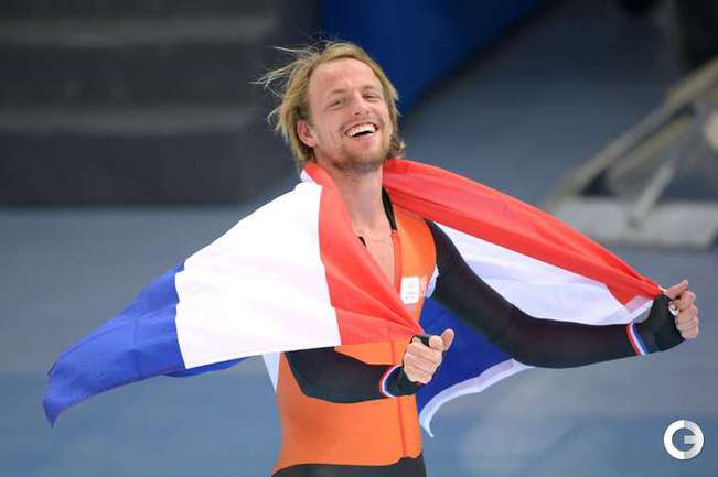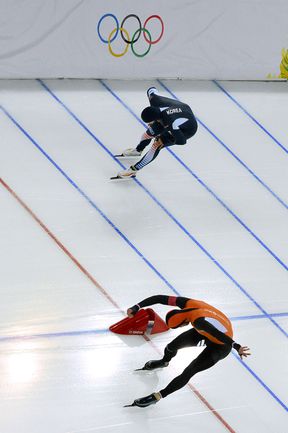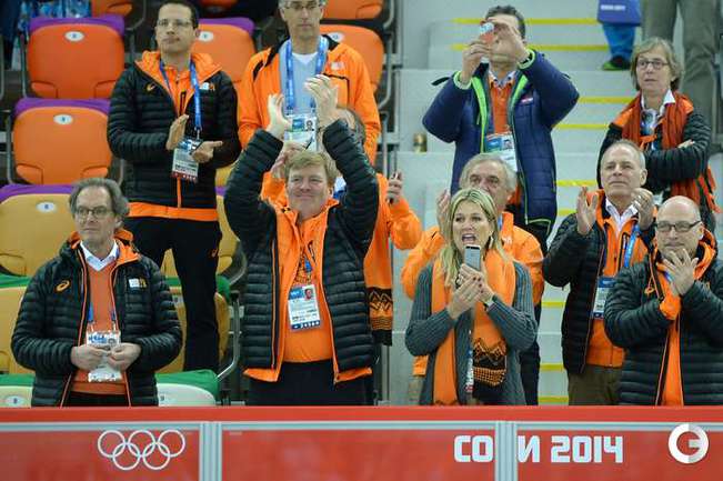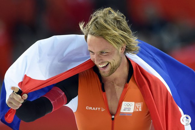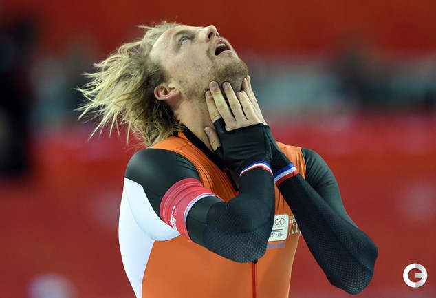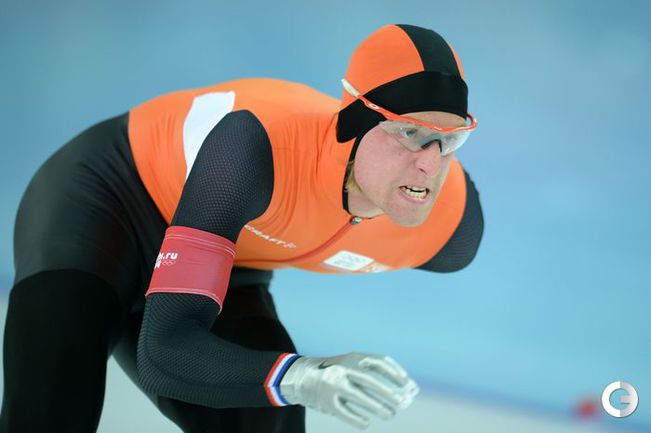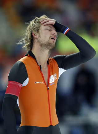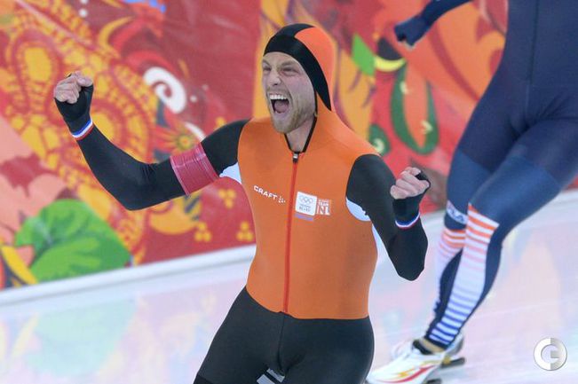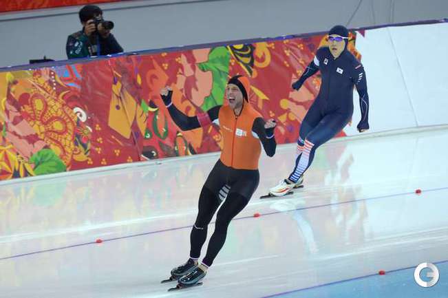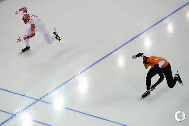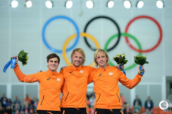 Коньки. Сочи. XXII Олимпийские зимние игры. Мужчины. 500 м. Сумма двух забегов. 1. М. Мулдер (Голландия) - 69,31 (34,63 + 34,67). 2. Смекенс (Голландия) - 69,32 (34,59 + 34,72). 3. Р. Мулдер (Голландия) - 69,46 (34,96 + 34,49). Это уже второй случай на Играх в Сочи, когда конькобежный пьедестал целиком занимают представители Голландии - ранее подобное произошло на дистанции 5000 м у мужчин. Лучший из россиян - Денис Коваль - стал 13-м. Фото AFP