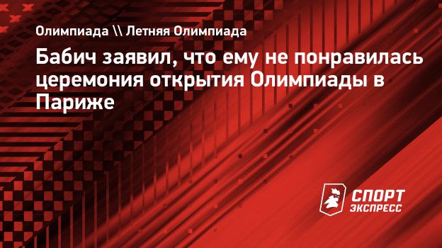 Бабич заявил, что ему не понравилась церемония открытия Олимпиады в Париже