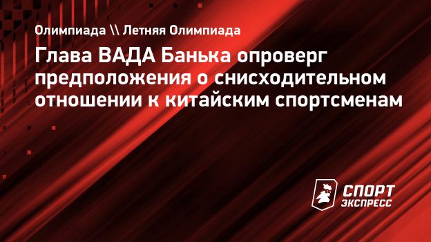 Глава ВАДА Банька опроверг предположения о снисходительном отношении к китайским спортсменам