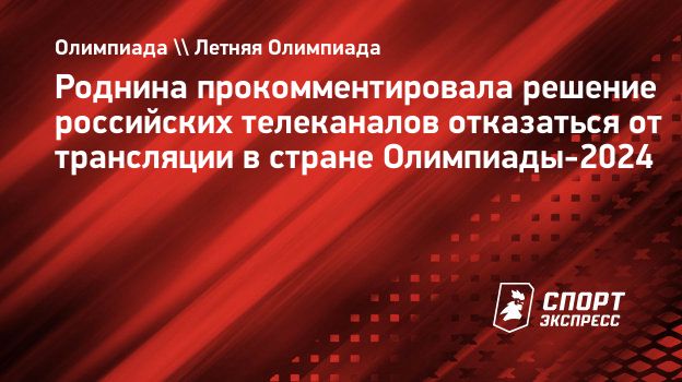 Бывшая фигуристка и депутат Госдумы РФ Ирина Роднина прокомментировала «СЭ» решение российских телеканалов отказаться от трансляции в стране Олимпиады-2024.