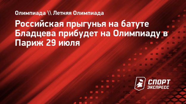 Елена Федоренчик, личный тренер российской прыгуньи на батуте Анжелы Бладцевой, сообщила, что спортсменка прилетит в Париж для участия в Олимпийских играх 29 июля.