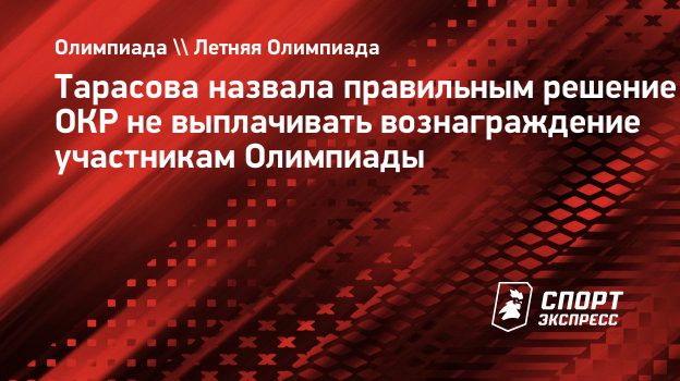 «Нельзя сказать, что отказ ОКР от выплат нашим участникам Олимпиады — несправедливо. Страна выплатила тем, кто не участвует. А если спортсмены выступают на Олимпийских играх, значит, сами должны себе заработать. Это будет правильно. Правильно, что заплатили тем, кто остался дома. А другие на это и не рассчитывали. Почему надо их поддержать? Они не представляли страну. Они представляли себя! Не понятно, почему в этом случае страна должна им платить?» — приводит Sport24 слова Тарасовой.