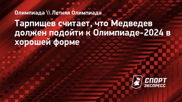 Президент Федерации тенниса России Шамиль Тарпищев считает, что российский теннисист Даниил Медведев должен подойти к Олимпийским играм в хорошей форме после выступления на Уимблдоне.