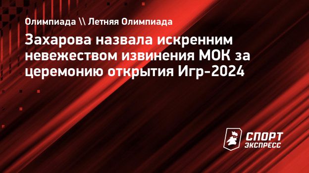 Захарова назвала искренним невежеством извинения МОК за церемонию открытия Игр-2024