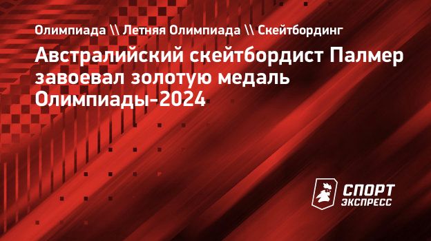 Палмер стал двукратным олимпийским чемпионом: на Играх-2020 в Токио он также выиграл золото в дисциплине «Парк».