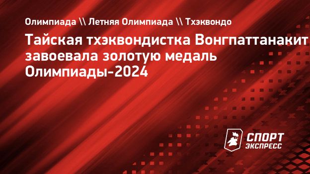 Тайская тхэквондистка Вонгпаттанакит завоевала золотую медаль Олимпиады-2024