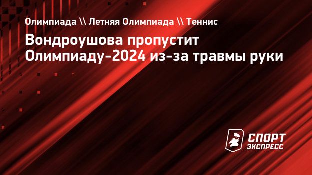 Серебряный призер Олимпиады-2020, чешская теннисистка Маркета Вондроушова заявила, что не выступит на Играх-2024 в Париже из-за травмы руки.