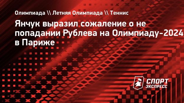 Российский теннисист Виктор Янчук в комментарии для «СЭ» выразил сожаление о не попадании теннисиста Андрея Рублева на Олимпиаду-2024 в Париже.