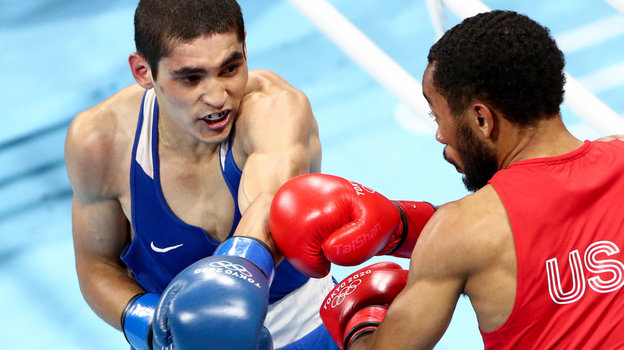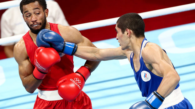 Российский боксер указал на триколор после победы в финале Игр над американцем