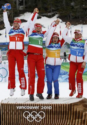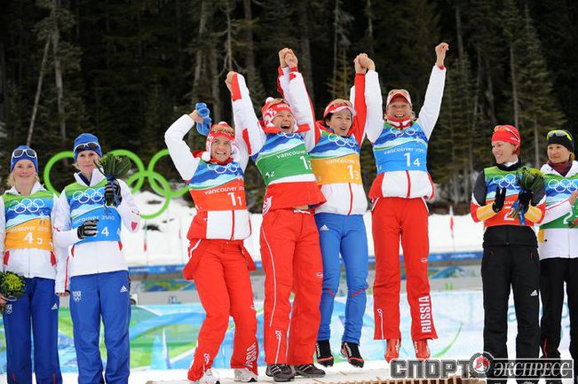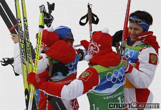 23.02.2010. Сборная России подтвердила звание сильнейшей эстафетной команды мира, повторив успех четырехлетней давности в Турине. Третье золото Ванкувера-2010 России принесли Светлана Слепцова, Анна Богалий-Титовец, Ольга Медведцева и Ольга Зайцева. Фото - AFP, REUTERS